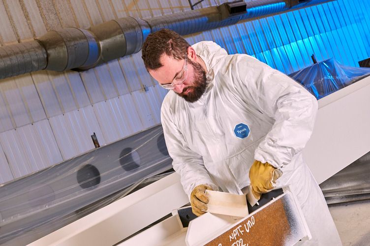 DuPont™ Tyvek® 400 DualFinish. Hooded coverall. Tyvek® at the front and large breathable SMS back. Stitched external seams in blue. Elasticated wrists, ankles and face. Thumb Holes. Elasticated waist (stitched-in). Zipper and flap. White.Quantity/box: 25 per box, bulk packed.